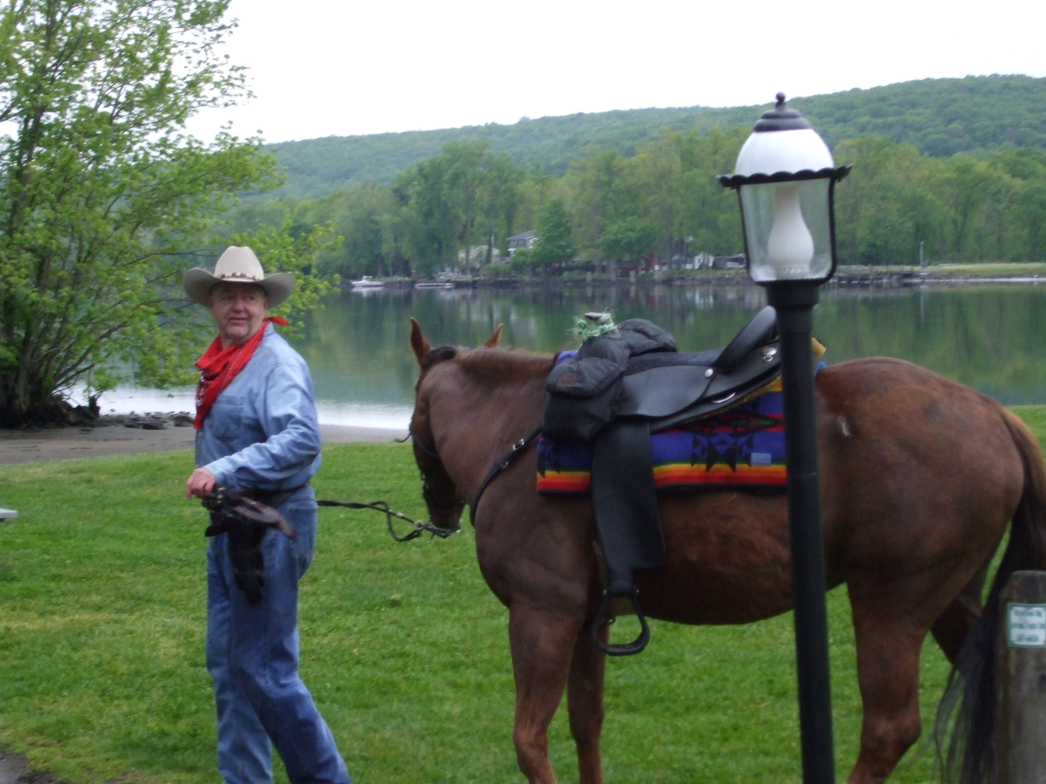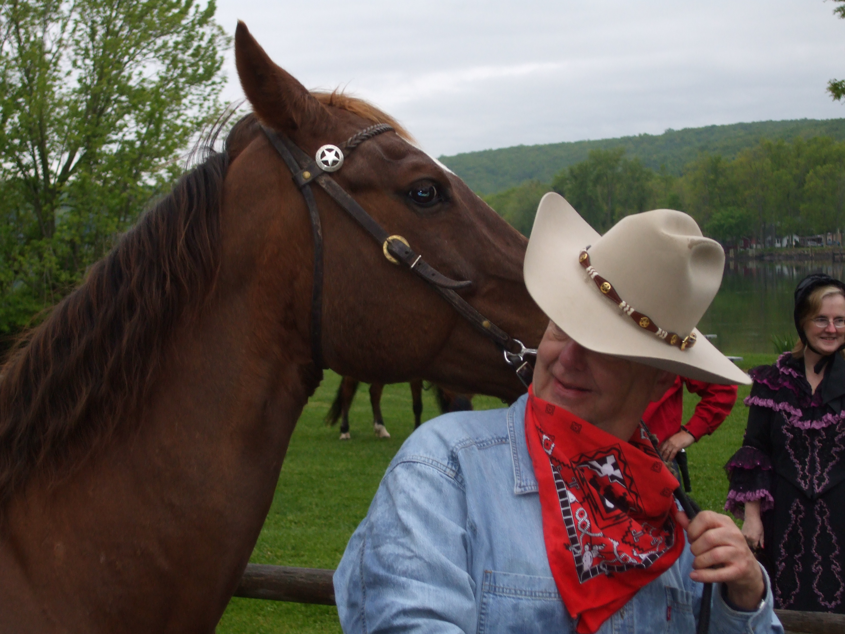 Jim and his horse Yankee appeared at the nationally reknowned Goodspeed Opera House in East Haddam, Connecticut on Wednesday, May 12th from 6:00 to 7:15 p.m., as the opening act for the Irving Berlin musical Annie Get Your Gun! Along with his riding partner Debbie McConnell and her mustang mare Joya, Jim and Yankee will be entertaining the audience with Yankee's stunts and tricks, and with a gunfight reenactment or two. They will be performing on the lawn of the Goodspeed, so the show is free to the public.